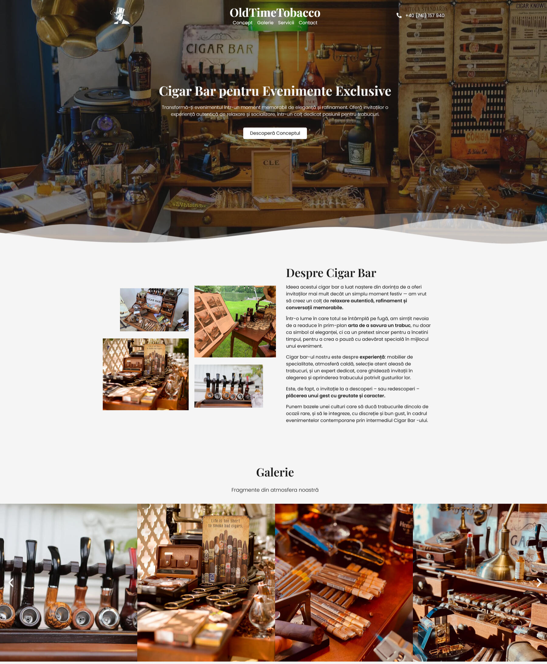 O pagină de prezentare elegantă pentru un serviciu mobil de bar de tutun, creată pentru rezervări la evenimente și solicitări de clienți. Site-ul a fost realizat în WordPress și Elementor, optimizat pentru viteză și responsivitate, livrat în doar 3 zile.